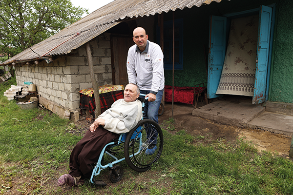 Seit Victor Gașco als Dreijähriger von einem Auto angefahren wurde, leidet der heute 65-Jährige unter einem Muskelschwund an den Beinen. Er erhält monatlich 80 Euro Rente. Seit die Eltern und der Bruder verstorben sind, lebt er allein im Elternhaus im Dorf Hitresti, zwei Stunden nördlich der Hauptstadt Chișinău. Sein Alltag mit der körperlichen Einschränkung ist unvorstellbar schwer. Das Haus hat weder eine Toilette noch fliessendes Wasser. Er kann sich nur mit grosser Mühe in seinem Haus fortbewegen, was ihn viel Zeit und Energie kostet. Wenigstens kann er nun den Hauspflegedienst von CASMED nützen, der vom Schweizerischen Roten Kreuz unterstützt wird. Mehrmals pro Woche hilft ihm Valentina Donighevici im Haushalt. Der Kontakt tut dem alleine lebenden Mann gut, und er kann trotz seines Handicaps zu Hause leben. Denn er ist geistig fit und lässt den Kopf nicht hängen: «Mein Traum ist es, einen elektrischen Rollstuhl zu haben. Dann könnte ich rund um mein Haus fahren.»